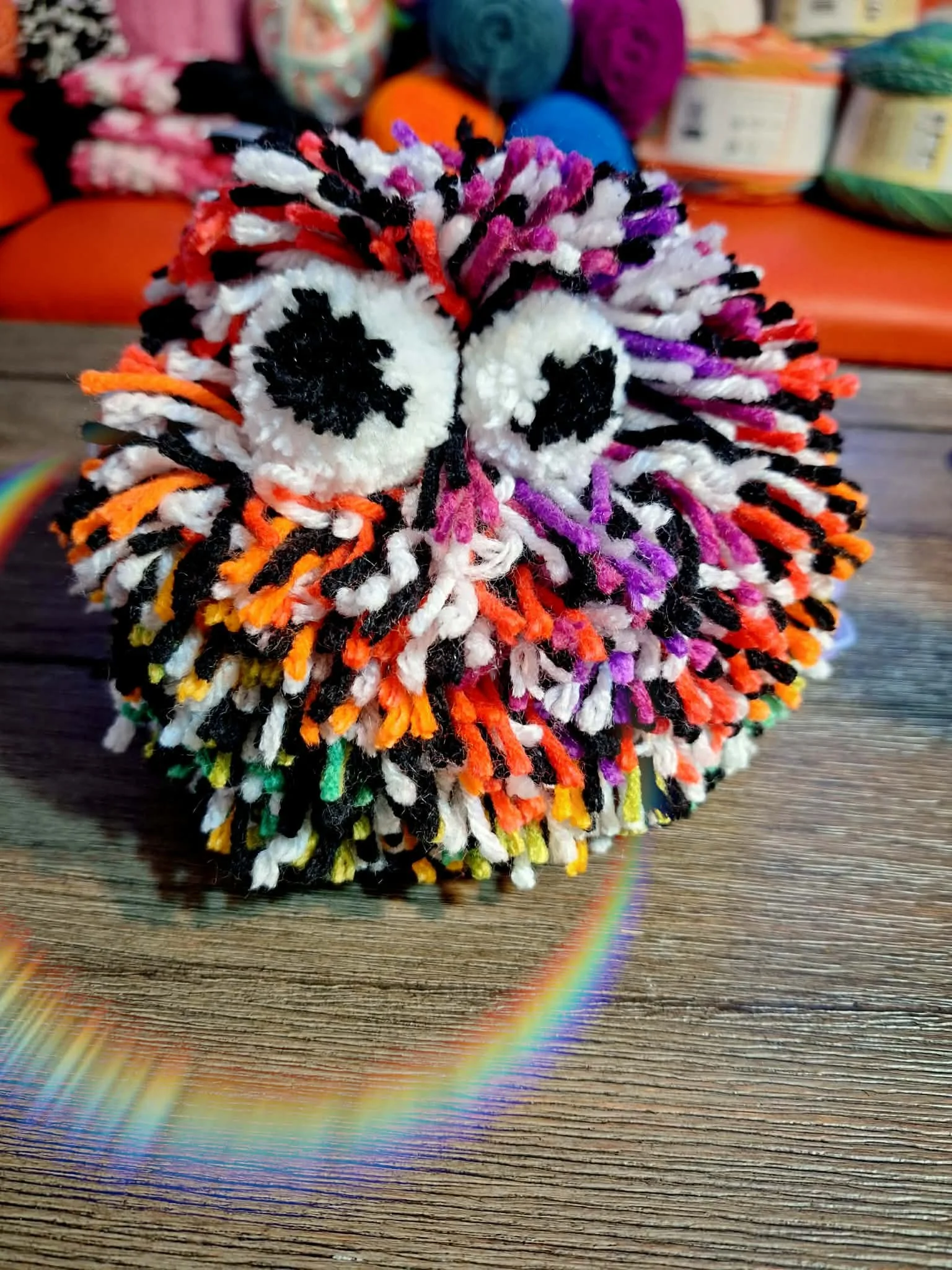Each Giant Pomple is handmade and completely unique, featuring shaggy yarn textures, mismatched eyes, and bold, joyful colors. When you adopt a Giant Mystery Pomple, the specific Pomple you receive is a surprise, selected at random to keep the process simple and the experience special.